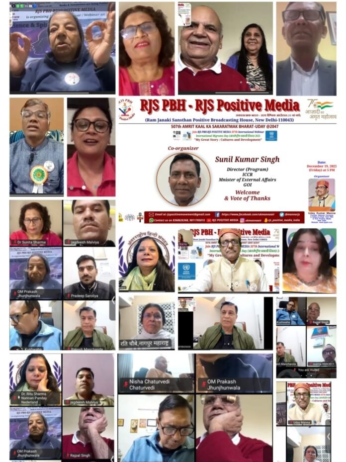 नई दिल्ली—अंतर्राष्ट्रीय प्रवासी दिवस के उपलक्ष्य में राम जानकी संस्थान पॉजिटिव ब्रॉडकास्टिंग हाउस (RJS PBH) के 507वें कार्यक्रम में में वैश्विक प्रवासी भारतीय , जो आर्थिक शक्ति और सांस्कृतिक लचीलेपन का एक शक्तिशाली स्रोत हैं, 19 दिसंबर 2025 को इंग्लैंड के सेवानिवृत्त चिकित्सक डा राजपाल सिंह और न्यूजीलैंड की हिंदी सेवी डा.सुनीता शर्मा चर्चा में भाग लिए। अंतरराष्ट्रीय प्रवासी दिवस (18 दिसंबर) पर आयोजित “माई ग्रेट स्टोरी, कल्चर एंड डेवलपमेंट” शीर्षक वाले इस शिखर सम्मेलन में भारत के लिए समुदाय के $129.1 बिलियन के वार्षिक योगदान (रेमिटेंस)पर प्रकाश डाला गया। कार्यक्रम के को-होस्ट सुनील कुमार सिंह, कार्यक्रम निदेशक, आईसीसीआर विदेश मंत्रालय, भारत सरकार ने समुदाय की महत्वपूर्ण आर्थिक भूमिका को रेखांकित करते हुए पुष्टि की कि डायस्पोरा प्रति वर्ष लगभग $129.1 बिलियन (USD) नकद भारत भेजता है—जो देश की अर्थ व्यवस्था और गरीबी उन्मूलन के लिए एक जीवन रेखा है। श्री सुनील कुमार सिंह ने जोर दिया कि ये व्यक्ति केवल आर्थिक योगदानकर्ता नहीं हैं, बल्कि सांस्कृतिक प्रसारक हैं जो योग, आयुर्वेद और भारतीय परंपराओं को वैश्विक स्तर पर फैलाकर भारत के सॉफ्ट पावर को मजबूत करते हैं।