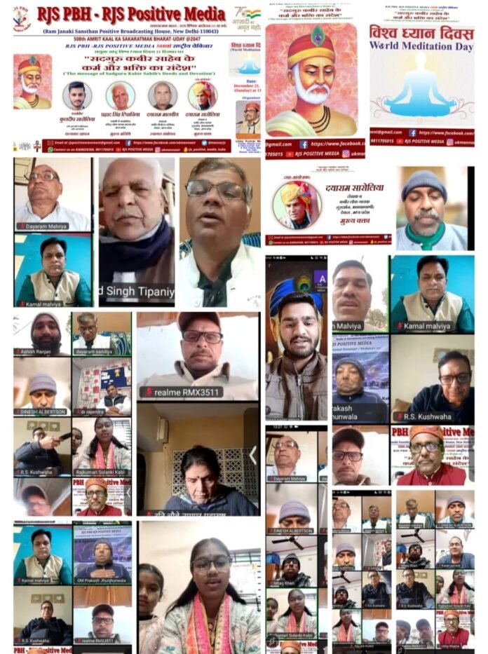 नई दिल्ली – ” “ऐसी वाणी बोलिए, मन का आपा खोए, औरन को शीतल करे, आपहुं शीतल होए” । राम जानकी संस्थान (आरजेएस) पॉजिटिव ब्रॉडकास्टिंग हाउस द्वारा विश्व ध्यान दिवस 21 दिसंबर 2025 के अवसर पर “सदगुरु कबीर साहब के कर्म और भक्ति का संदेश” विषय पर आधारित इस कार्यक्रम में 15वीं शताब्दी के संत कबीर दास की शिक्षाओं को मानसिक मजबूती और सामाजिक समरसता के आधुनिक ब्लूप्रिंट के रूप में प्रस्तुत किया गया।