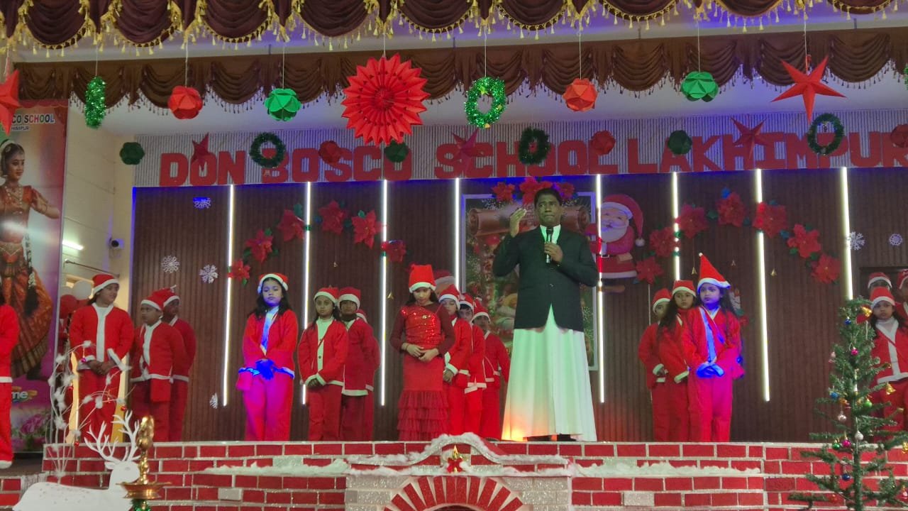 कार्यक्रम के दौरान फादर बिराज ने प्रभु यीशु के जीवन दर्शन पर प्रकाश डालते हुए मानवता, सेवा और प्रेम का संदेश दिया, जो सभी के हृदय को छू गया। वहीं सेंटा क्लॉज के रूप में सजे पात्र ने बच्चों में खुशियों की सौगात बाँटी टॉफियां और उपहार पाकर बच्चों के चेहरे खिल उठे। क्रिसमस उत्सव को रचनात्मकता का रंग देने हेतु यूकेजी से कक्षा आठ तक तीन वर्गों में क्लास डेकोरेशन प्रतियोगिता का आयोजन किया गया जिसमें यूकेजी- ए , कक्षा 4- ए व 7-बी ने सबसे उत्तम प्रदर्शन कर विजय प्राप्त की । इस प्रतियोगिता का निर्णयन तीन जजों (प्रधानाचार्य फादर बिराज , उपप्रधानाचार्य फादर स्टीफन तथा प्रधानाचार्य दिन बॉस्को, मैलानी )की निर्णायक मंडली द्वारा किया गया। प्रतियोगिता में विजयी छात्रों एवं उनके मार्गदर्शक अध्यापकों को सम्मानपूर्वक पुरस्कृत किया गया। यह सम्मान केवल पुरस्कार नहीं, बल्कि बच्चों की कल्पनाशीलता, टीमवर्क और शिक्षकों की प्रेरणादायी भूमिका का उत्सव था। साथ ही जिन बच्चों ने परीक्षा में सभी विषयों में पूर्ण अंक प्राप्त किए , उन्हें भी पुरस्कृत किया गया । कुल मिलाकर डॉन बास्को, लखीमपुर का यह क्रिसमस आयोजन आनंद, अनुशासन और आदर्शों का संगम बनकर उभरा जहाँ बच्चों ने न केवल मंच पर प्रदर्शन किया, बल्कि अपने व्यवहार और भावों से प्रेम, सेवा और मानवता का अमिट संदेश भी दिया।