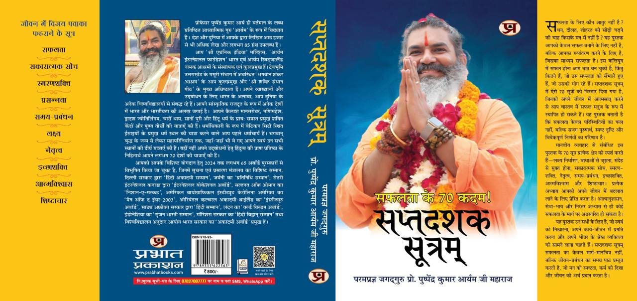 सफलता सभी को चाहिए । सभी जीवन में सफलता का स्वाद चखना चाहते हैं । भले ही हर एक के लिए सफलता की परिभाषा और पैमाने अलग-अलग हैं लेकिन अपने जीते जी वह इससे कम पर राजी नहीं । कुछ लोग जैसा सोचते हैं पा जाते हैं । कुछ लोग सफलता के मौके चूकते जाते हैं और कई लोग तो यह समझ ही नहीं पाते कि सफलता वो किसे कहें । सांसारिक उन्नति को, आध्यात्मिक उन्नति को या फिर अपने मन की कर ले जाने को, बस । जितने लोग, उतनी महत्वाकांक्षाएं । पर, वास्तव में सफलता है क्या ? इसे पाने का रोडमैप क्या हो और अगर मिल जाए तो उसे संभालना-संवारना कैसे है ? यह मंत्र तो कोई अनुभवी विद्वान या गुरु ही बता सकता है और इसी कार्य को कर गुजरे हैं प्रोफेसर पुष्पेंद्र कुमार आर्यम जी । अपनी नई पुस्तक ‘सप्तदशक सूत्रम’ में उन्होंने बड़े करीने से एक-एक बात बड़ी बारीकी और साफगोई से बताई-सिखाई है कि सफलता की सीढ़ी चढ़ी कैसे जाती है ।
