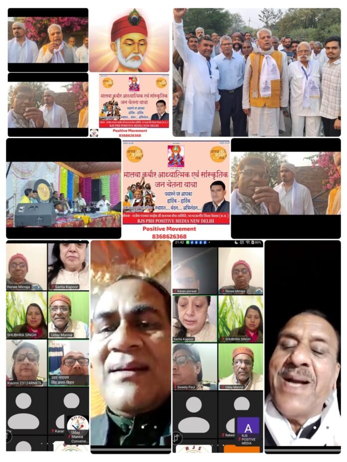 दिल्ली – मालवा कबीर महोत्सव व यात्रा,पांदा जागीर,देवास (म.प्र.) के वैश्विक आध्यात्मिक विमर्श का सेतु बना आरजेएस पीबीएस -आरजेएस पाॅजिटिव मीडिया।अनेक प्रदेशों से जुड़े वेबिनार के दर्शकों ने प्रस्तुत कबीर भजनों का आनंद लिया।