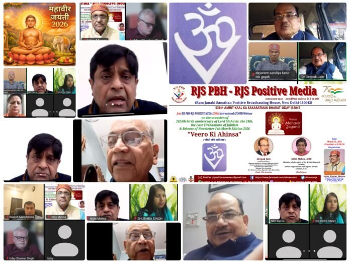 नई दिल्ली। राम जानकी संस्थान पॉजिटिव ब्रॉडकास्टिंग हाउस (आरजेएस पीबीएच) और आरजेएस पाॅजिटिव मीडिया,नई दिल्ली द्वारा 31 मार्च 2026 को आयोजित “वीरों की अहिंसा” पर कार्यक्रम दुनिया के तनाव भरे माहौल में, भगवान महावीर के सिद्धांतों की ओर लौटने का एक निर्णायक आह्वान था, जिसे न केवल एक धार्मिक पालन के रूप में, बल्कि 21वीं सदी के लिए एक रणनीतिक आर्थिक और सामाजिक अनिवार्यता के रूप में देखा गया।